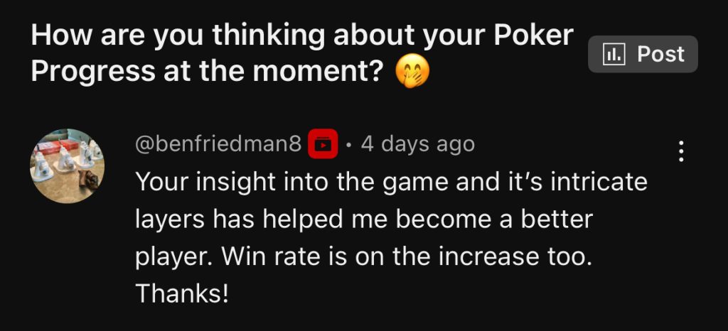 If you’re still unsure, that’s fine. Watch my videos, read my emails, or come back when you’re ready. I can’t help players who still half-believe it’s luck or variance holding them back.